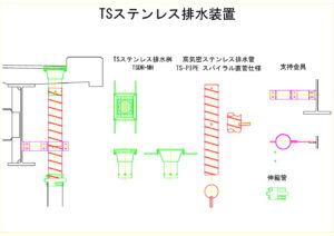 - E.01 TSステンレス排水桝、E.04 高気密ステンレス排水管