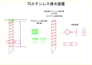 - E.01 TSステンレス排水桝、E.04 高気密ステンレス排水管