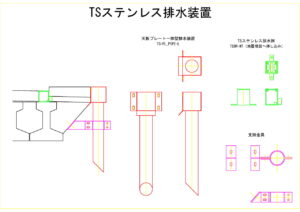 - E.01 TSステンレス排水桝、E.02 天板プレート