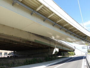 この図の合流箇所と図はありませんが並走する橋の設置されています。