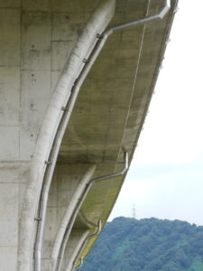 永平寺大野道路 鹿谷高架橋 / 福井県 / 新設 / 排水管 最終更新日時 : tospa-photo Bookmark ・発注者/自治体:近畿地方整備局 福井河川国道事務所 ・排水装置納入日:2006- ・撮影日:2011.08 高気密ステンレス排水管をご採用頂きました。 リブ・フランジ加工を施した薄型ステンレス金具を使用。 上記金具はこちらにて。 ・製品紹介ページは下記を参照ください。 →高気密ステンレス排水管 製品紹介ページ ※製作品の為、詳細の仕様は異なります