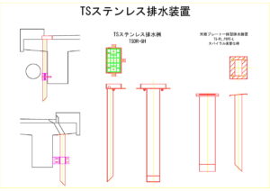- E.01 TSステンレス排水桝、E.02 天板プレート