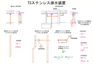- E.03 あとからフレキ、E.04 高気密ステンレス排水管