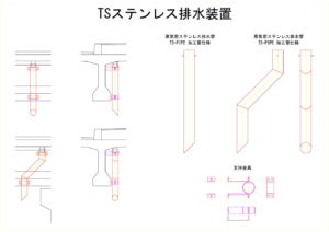 - S.04-2a 補修排水管-橋座、縁端拡幅、鋼製ブラケット避け曲げ、S.04-1b 垂れ流し排水管