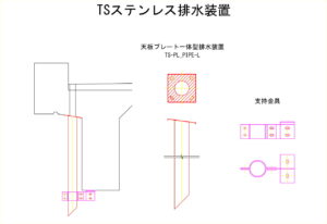 - S.07-2 支持金具-吊下(一部のみ)、S.02 天板プレート一体型排水装置