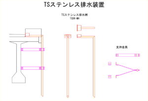 本施工事例は、橋梁補修工事の一環として、当社TSステンレス排水装置「TSステンレス排水桝(地覆横引)」を採用いただいた事例となります。