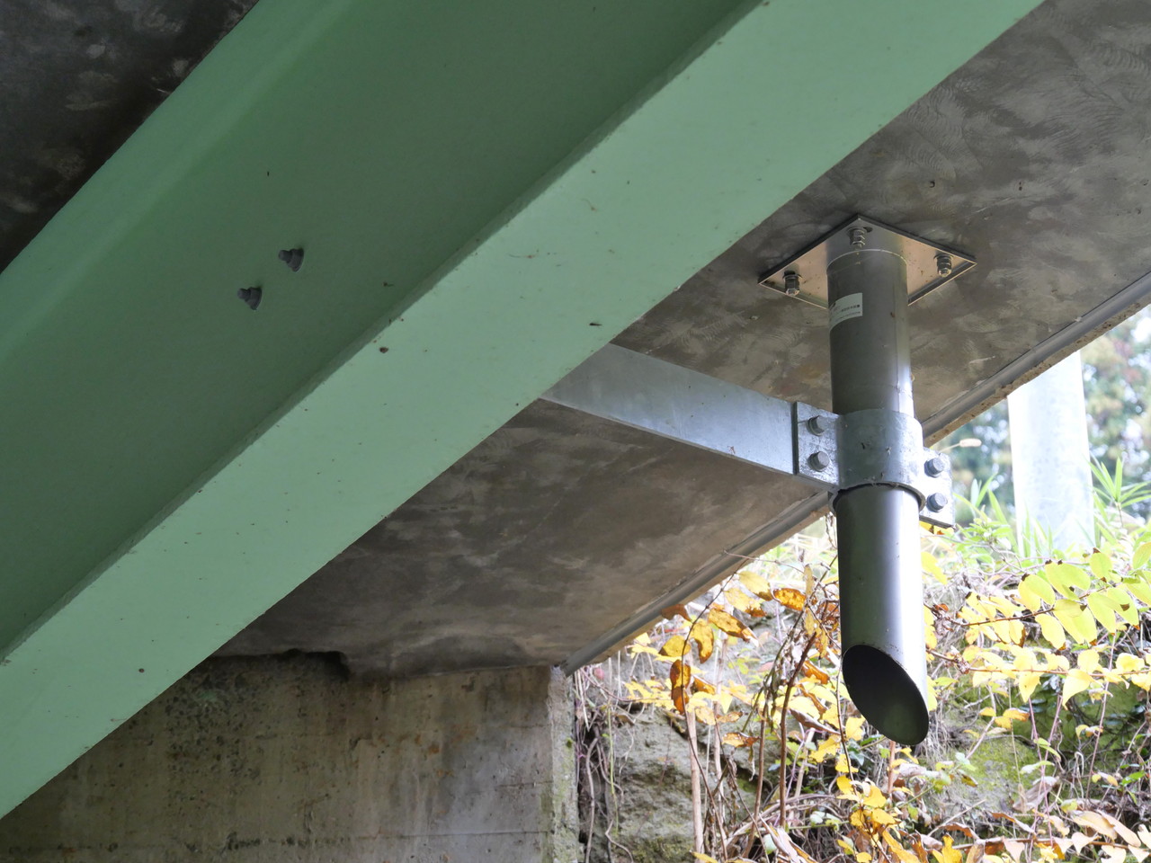 上薦野橋 / 福岡県 / 補修 / 天板プレート (NETIS) 最終更新日時 : tospa-photo Bookmark ・発注者/自治体:古賀市 ・排水装置納入日:2025.01 ・撮影日:2025.12 天板プレート一体型排水装置をご採用頂きました。 桁孔明し支持金具を設置しています。 (近似)製品写真、イメージ、図面 ※お問い合わせ、作図等のご要望がございましたら、お気軽にご連絡ください。 参考 調査時等、施工・補修前写真 ・製品紹介ページは下記を参照ください。 →天板プレート 製品紹介ページ ※製作品の為、詳細の仕様は異なります