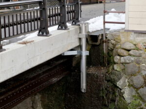 本施工事例は、橋梁補修工事の一環として、当社TSステンレス排水装置「TSステンレス排水桝(地覆横引)」を採用いただいた事例となります。