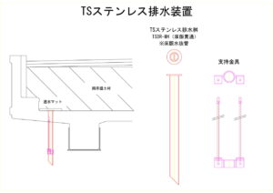 本施工事例は、橋梁補修工事の一環として、当社TSステンレス排水装置「TSステンレス排水桝(床版貫通管)」を採用いただいた事例となります。