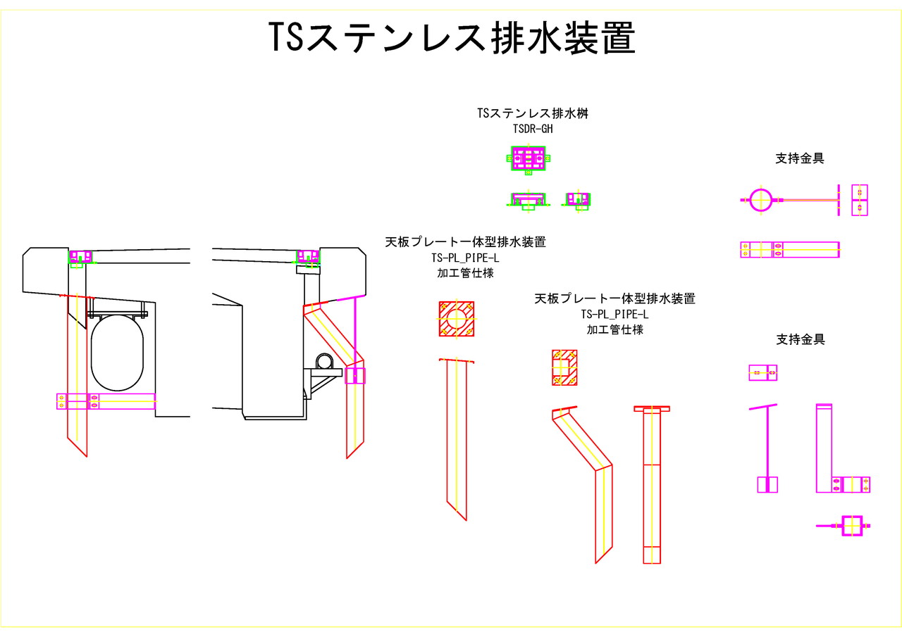 - E.01 TSステンレス排水桝、E.02 天板プレート