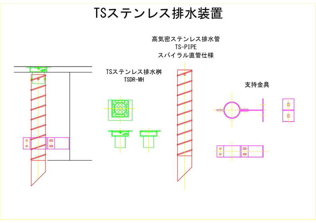 - E.01 TSステンレス排水桝、E.04 高気密ステンレス排水管