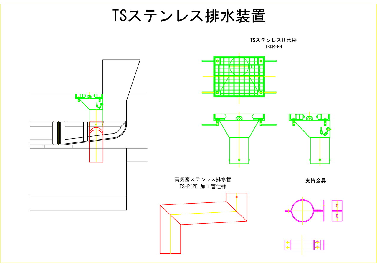 - E.01 TSステンレス排水桝、E.04 高気密ステンレス排水管