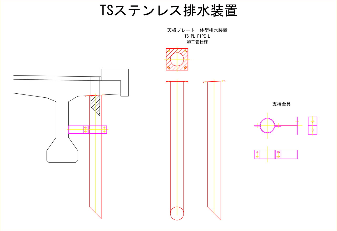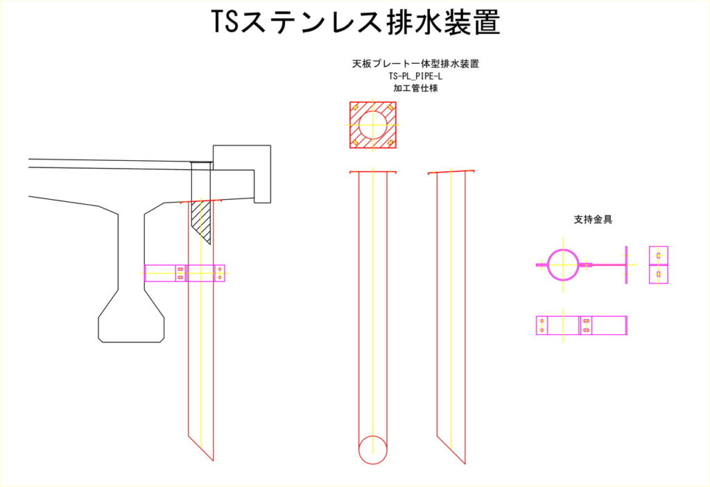 南中橋 / 新潟県 / 補修 / 天板プレート (NETIS) 最終更新日時 : tospa-photo Bookmark ・発注者/自治体:関川村 ・排水装置納入日:2022.10 ・撮影日:2023.03 天板プレート一体型排水装置をご採用頂きました。 (近似)製品写真、イメージ、図面 ※お問い合わせ、作図等のご要望がございましたら、お気軽にご連絡ください。 参考 調査時等、施工・補修前写真 ・製品紹介ページは下記を参照ください。 →高気密ステンレス排水管 製品紹介ページ ※製作品の為、詳細の仕様は異なります