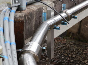 本施工事例は、橋梁補修工事の一環として、当社TSステンレス排水装置「TSステンレス排水桝(地覆横引)」「天板プレート一体型排水装置」を採用いただいた事例となります。