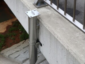 本施工事例は、橋梁補修工事の一環として、当社TSステンレス排水装置「TSステンレス排水桝(地覆横引)」を採用いただいた事例となります。