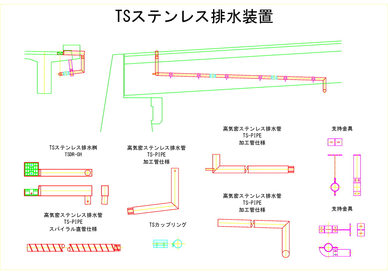 - E.01 TSステンレス排水桝、E.04 高気密ステンレス排水管