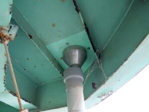 橋梁の既設排水装置(排水桝)の腐食、孔開きの写真