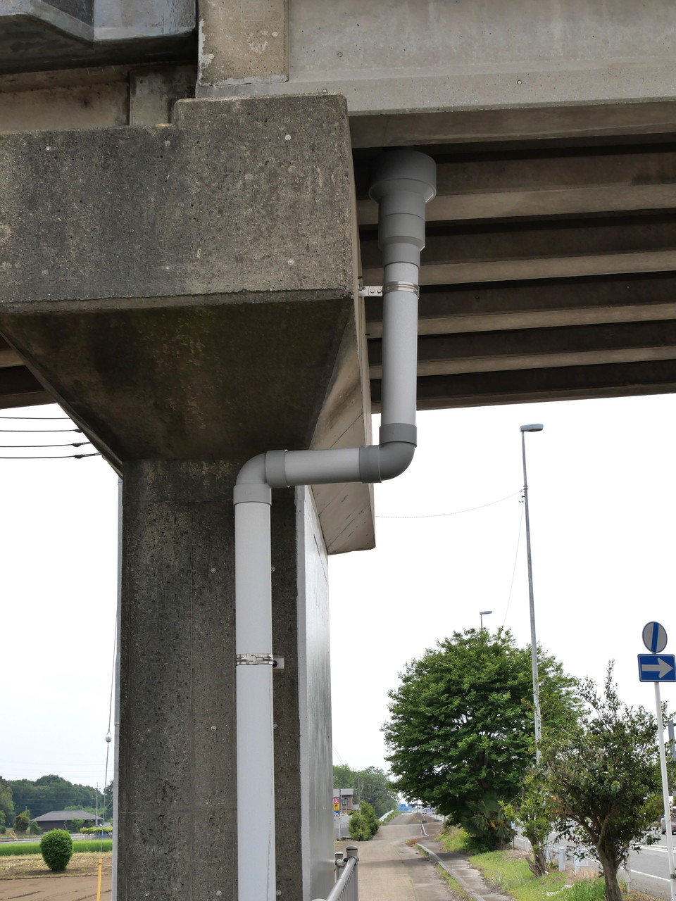 夕顔の橋 / 栃木県 / 補修 / 天板プレート (NETIS) 最終更新日時 : tospa-photo Bookmark ・発注者/自治体:下野市 ・排水装置納入日:2024.04 ・撮影日:2025.05 天板プレート一体型排水装置をご採用頂きました。 T桁 間詰部からの排水です。天板プレートで他管種へ導水しています。 (近似)製品写真、イメージ、図面 ※お問い合わせ、作図等のご要望がございましたら、お気軽にご連絡ください。 ・製品紹介ページは下記を参照ください。 →天板プレート 製品紹介ページ ※製作品の為、詳細の仕様は異なります