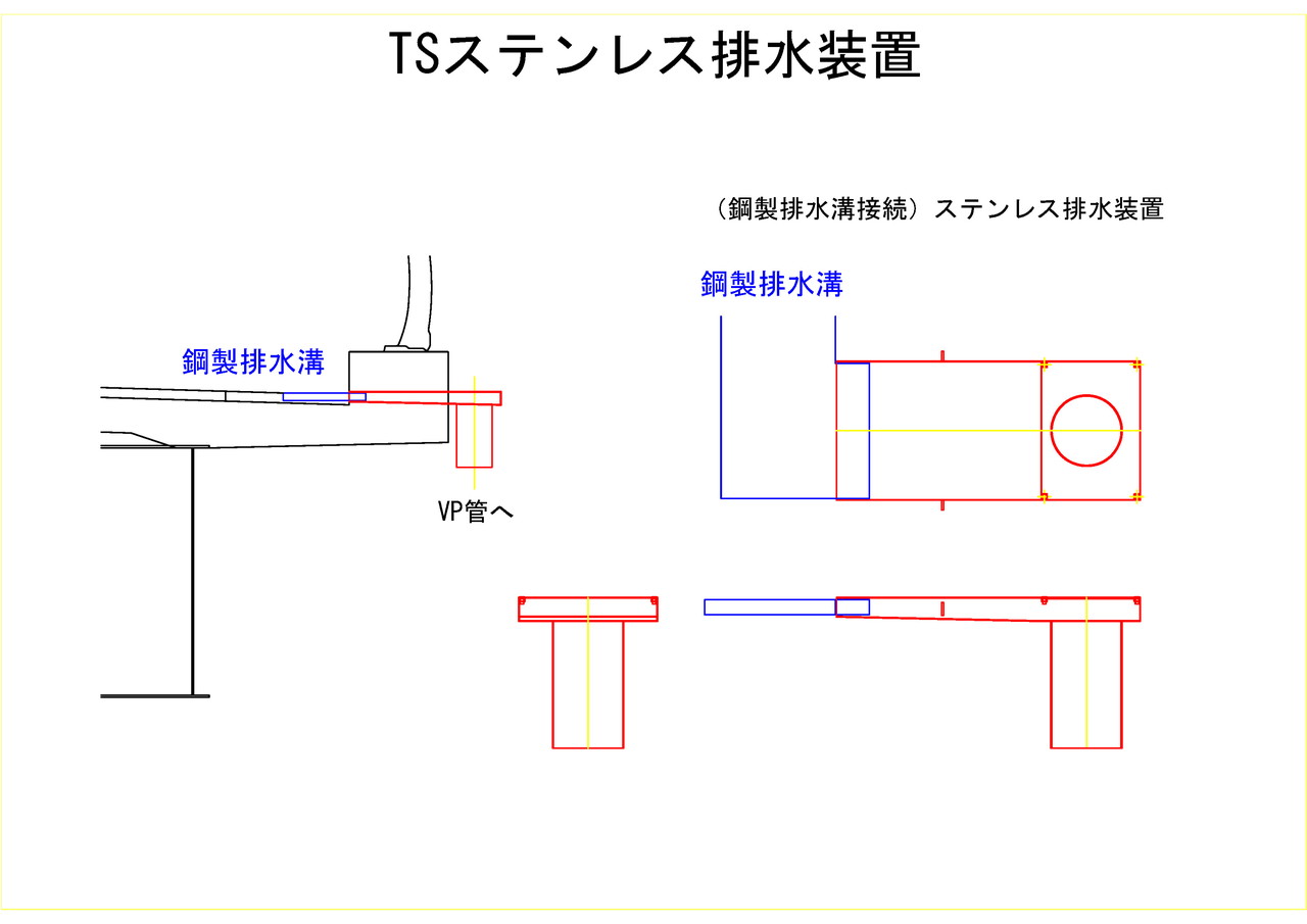 大庭大橋 / 神奈川県 / 補修 / 排水桝(地覆にて鋼製排水溝に接続) 最終更新日時 : tospa-photo Bookmark ・発注者/自治体:藤沢市 ・排水装置納入日:2022.02~ ・撮影日:2023.12 TSステンレス排水桝(地覆にて鋼製排水溝に接続)をご採用頂きました。角-丸となります。 ※排水管は塩ビ管になります。 ※橋面は鋼製排水溝により排水されています。 (近似)製品写真、イメージ、図面 ※お問い合わせ、作図等のご要望がございましたら、お気軽にご連絡ください。 ・製品紹介TOPページは下記を参照ください。 →TSステンレス排水桝 製品紹介TOPページ ※製作品の為、詳細の仕様は異なります