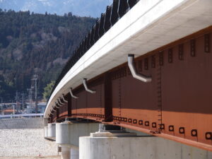 橋梁新設(上部工工事)における排水装置の設置や、詳細(新設)設計において排水装置を検討されている現場担当者・設計者・建設コンサルタントの皆様に向けた参考資料として、設置後の現場写真に加え、参考図面や施工時の写真等をご紹介します。