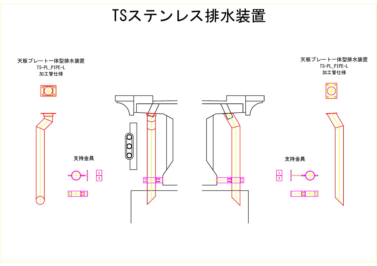 • こちらは天板プレートと排水管の間に一体の受枠を設け製作しています。