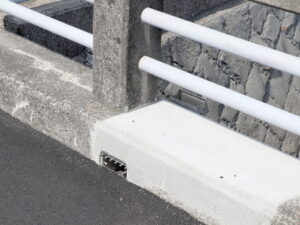 本施工事例は、橋梁補修工事の一環として、当社TSステンレス排水装置「TSステンレス排水桝(地覆横引)」を採用いただいた事例となります。