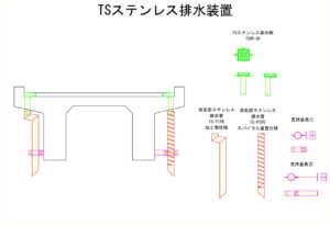 本施工事例は、橋梁補修工事の一環として、当社TSステンレス排水装置「TSステンレス排水桝」「高気密ステンレス排水管」を採用いただいた事例となります。