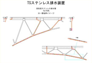 本施工事例は、橋梁補修工事の一環として、当社TSステンレス排水装置「高気密ステンレス排水管」を採用いただいた事例となります。