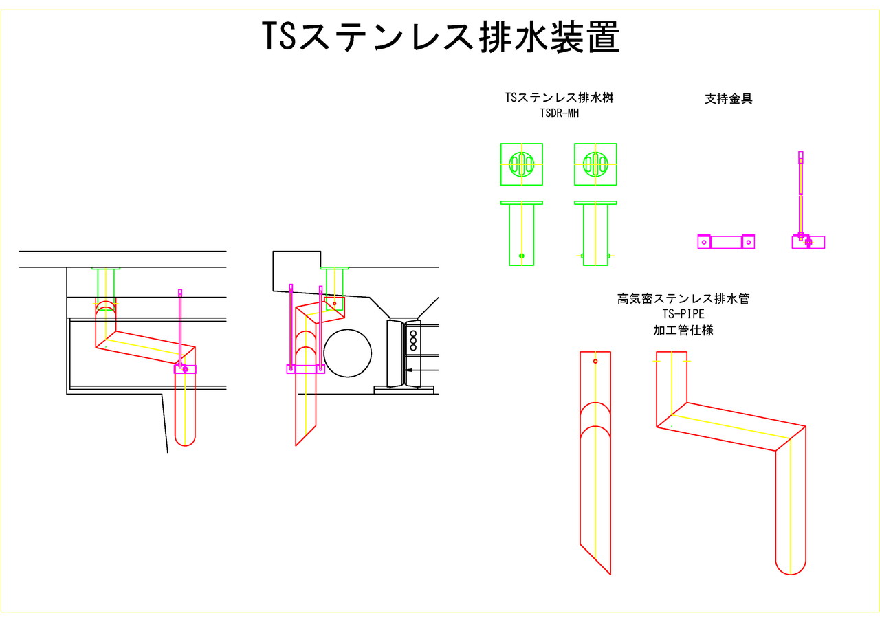 - E.01 TSステンレス排水桝、E.04 高気密ステンレス排水管