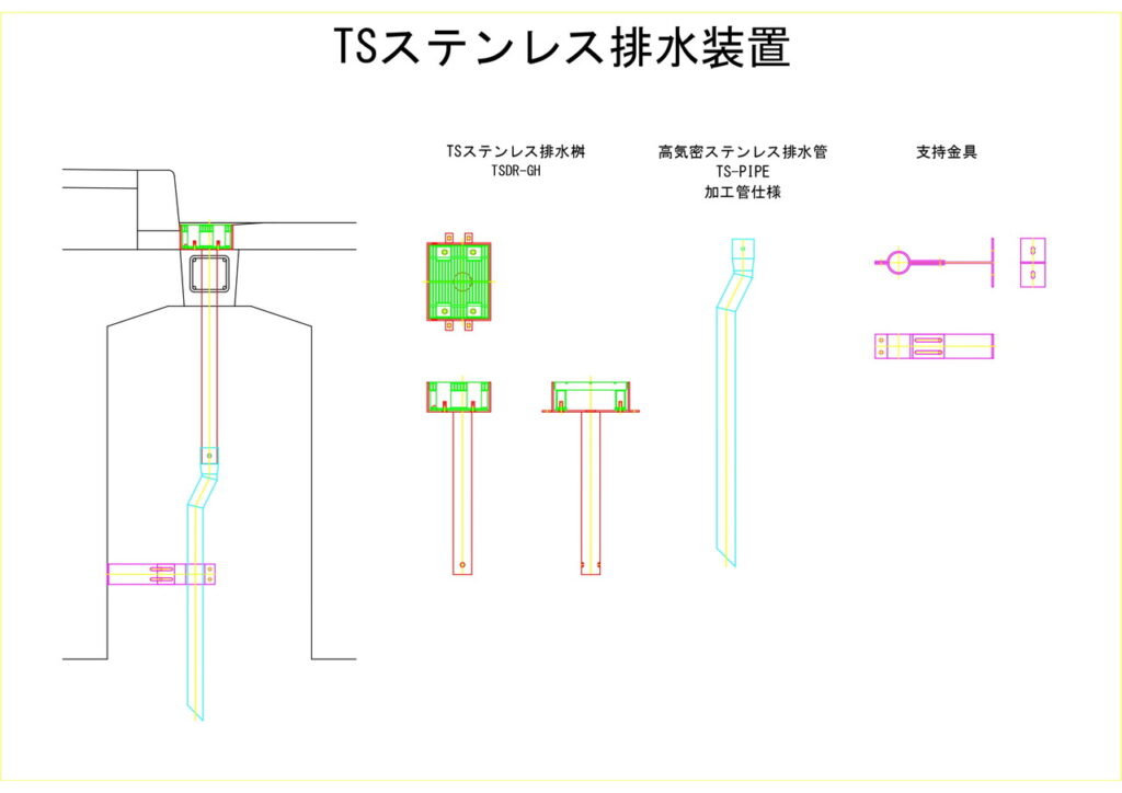 - E.01 TSステンレス排水桝、E.04 高気密ステンレス排水管