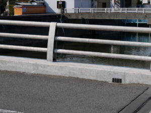 本施工事例は、橋梁補修工事の一環として、当社TSステンレス排水装置「TSステンレス排水桝(地覆横引)」を採用いただいた事例となります。