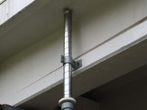 上部排水管が当社ステンレス製になります。下部排水管は塩ビ管(VP管)になります。