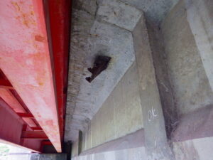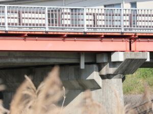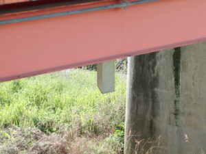 側道の歩道部は鋼橋ですが本線はT桁のコンクリート橋になります。製品は本線に設置されています。