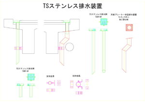 - E.01 TSステンレス排水桝、E.02 天板プレート