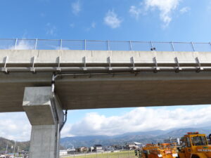 橋梁新設(上部工工事)における排水装置の設置や、詳細(新設)設計において排水装置を検討されている現場担当者・設計者・建設コンサルタントの皆様に向けた参考資料として、設置後の現場写真に加え、参考図面や施工時の写真等をご紹介します。