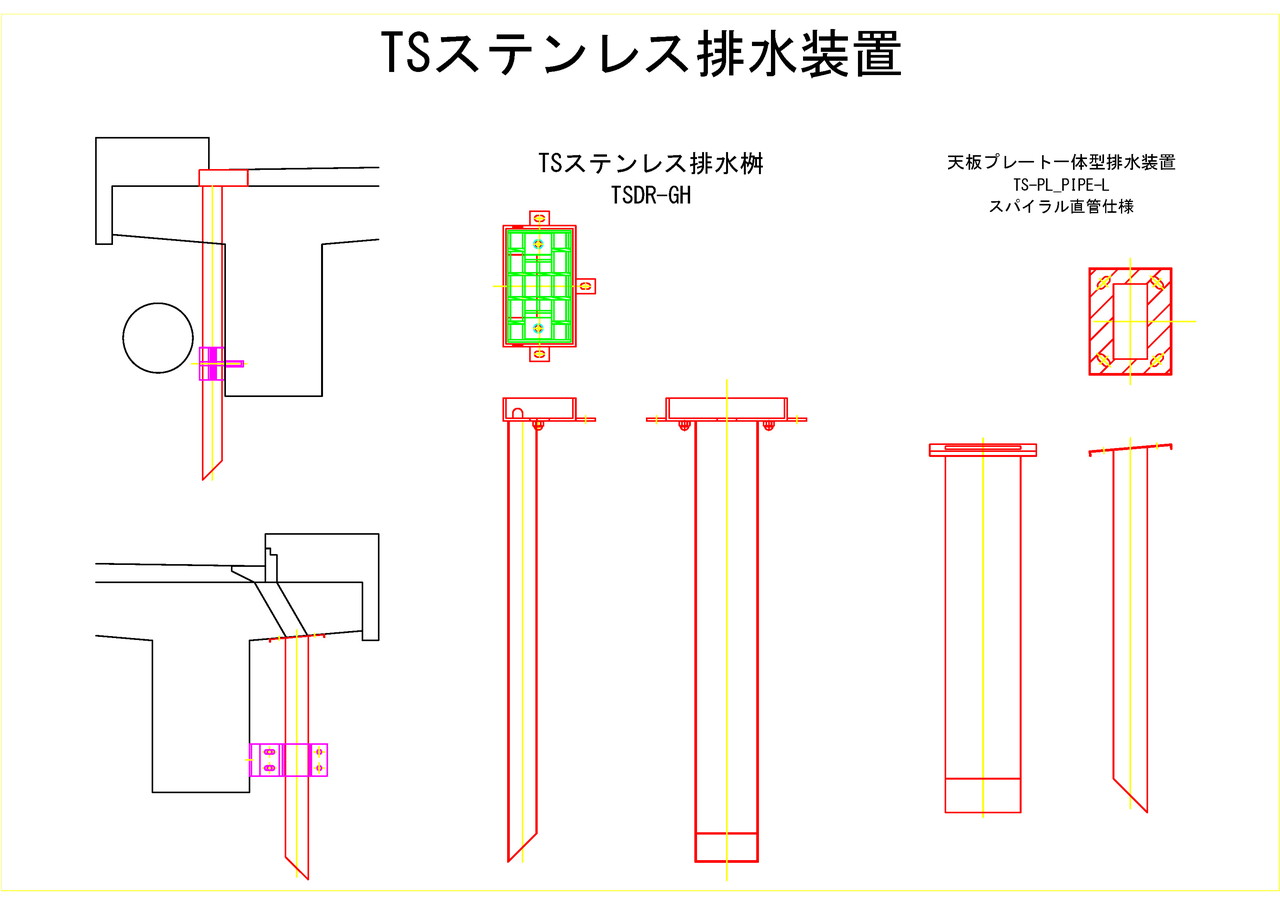 - E.01 TSステンレス排水桝、E.02 天板プレート