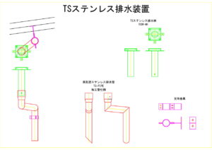 - E.01 TSステンレス排水桝、E.04 高気密ステンレス排水管