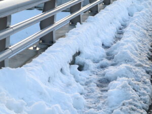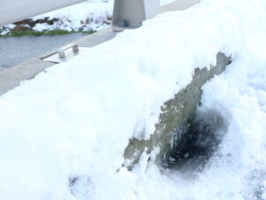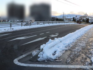 積雪のため、写真はありませんが歩車道境界の車道側に間詰部排水が設置されています。詳細は下記図をご覧ください