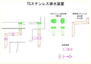 - E.01 TSステンレス排水桝、E.04 高気密ステンレス排水管