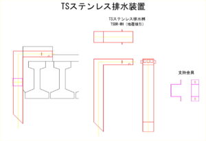 本施工事例は、橋梁補修工事の一環として、当社TSステンレス排水装置「TSステンレス排水桝(地覆横引)」を採用いただいた事例となります。