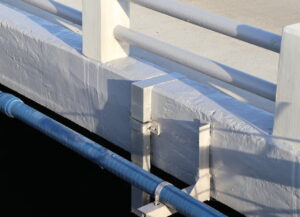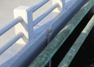 本施工事例は、橋梁補修工事の一環として、当社TSステンレス排水装置「TSステンレス排水桝(地覆横引)」を採用いただいた事例となります。