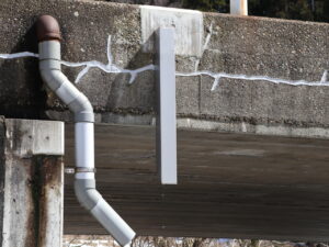 本施工事例は、橋梁補修工事の一環として、当社TSステンレス排水装置「TSステンレス排水桝(地覆横引)」を採用いただいた事例となります。