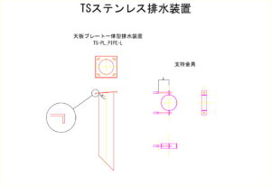 - S.02 天板プレート一体型排水装置、S.07-3 支持金具-ずん切使用