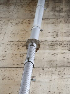 ステンレス管と既設鋼管(SGP)の接続には、電食防止のためEPDMパッキンによる絶縁処理を施したフランジ接続を採用しています。