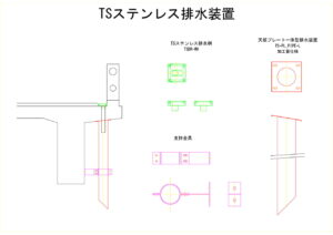 - E.01 TSステンレス排水桝、E.02 天板プレート