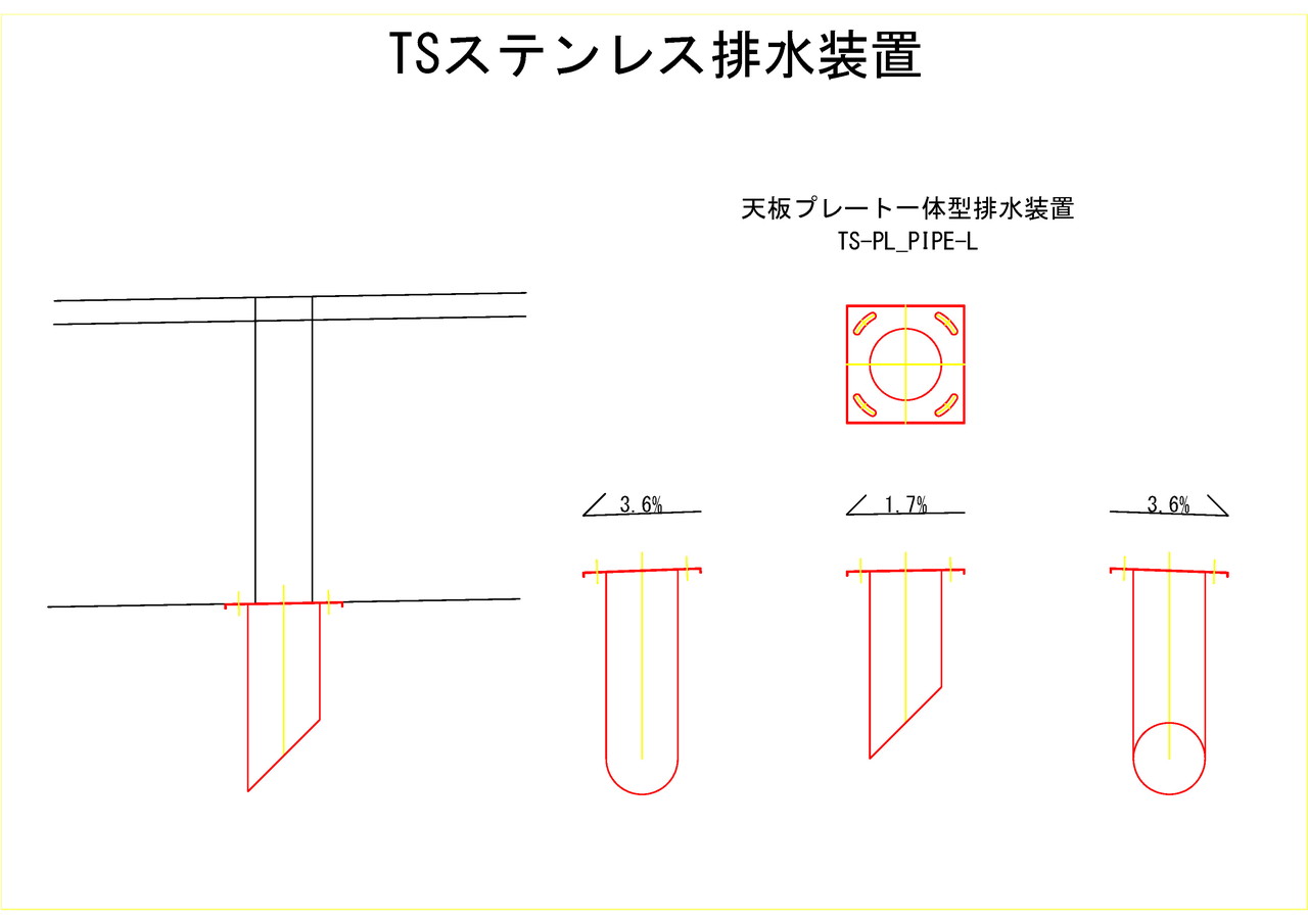 • 奥に見える排水管が天板プレート一体型排水装置になります。(手前は既設のままです)