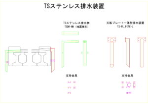- E.01 TSステンレス排水桝、E.02 天板プレート