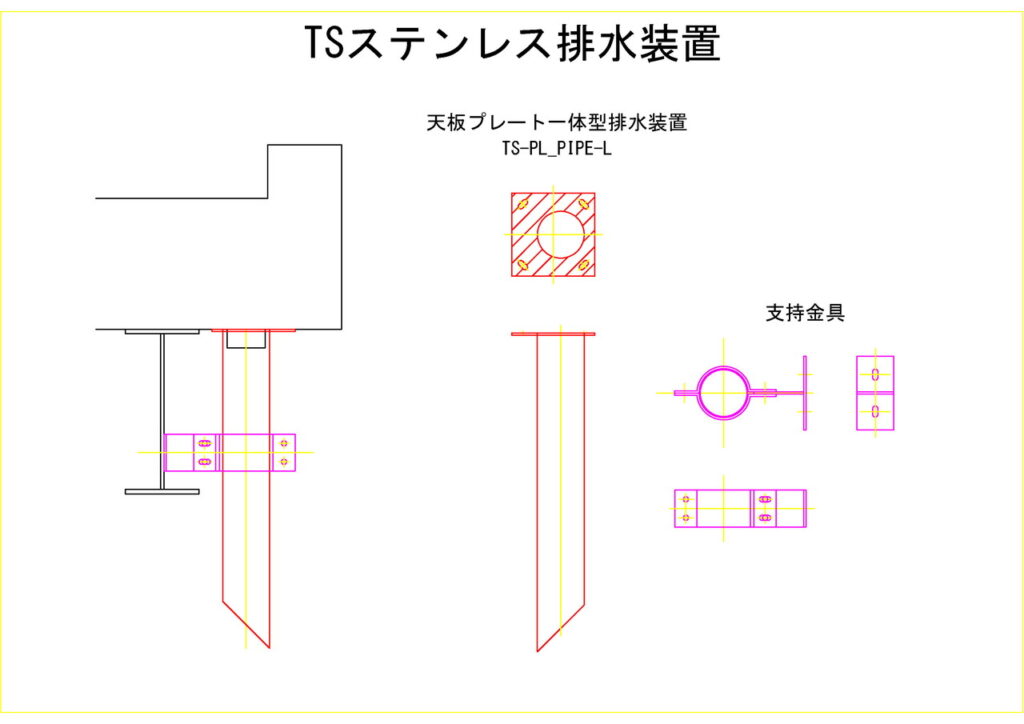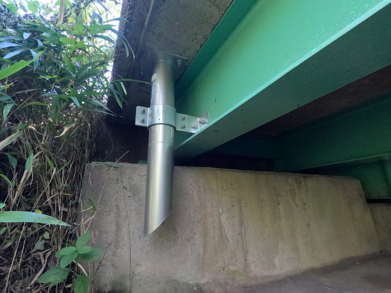 黒田1号橋 / 三重県 / 新設 / 天板プレート (NETIS) 最終更新日時 : tospa-photo Bookmark ・発注者/自治体:四日市市 ・排水装置納入日:2024.02 ・撮影日:2025.10 天板プレート一体型排水装置をご採用頂きました。 (近似)製品写真、イメージ、図面 ※お問い合わせ、作図等のご要望がございましたら、お気軽にご連絡ください。 ・製品紹介ページは下記を参照ください。 →天板プレート 製品紹介ページ ※製作品の為、詳細の仕様は異なります
