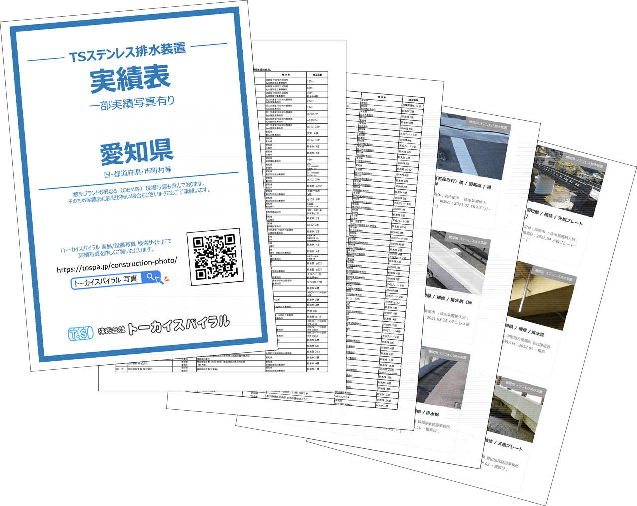 橋梁用TSステンレス排水装置のトーカイスパイラルです。1基、1本から提案・作図・製作を行っております。