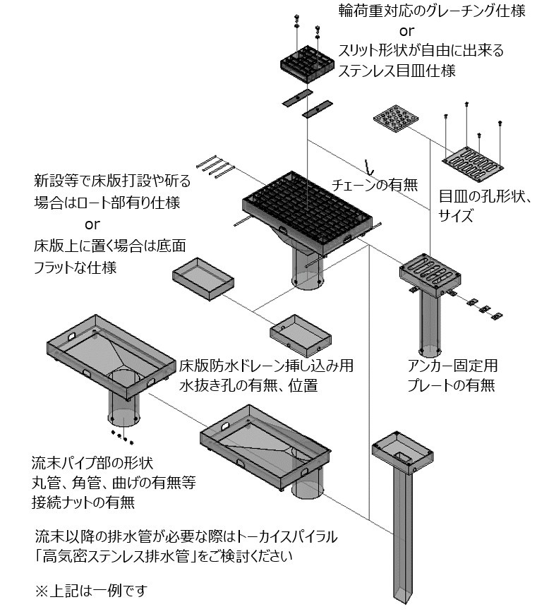 TSステンレス排水桝の仕様一例